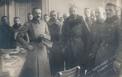 Piłsudski Józef (1867-1935) w otoczeniu kadry oficerskiej Legionów