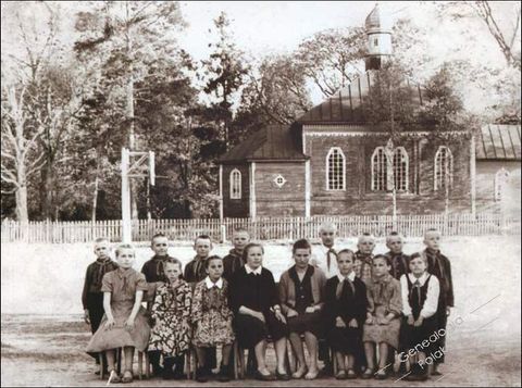 Łoktysze, dzieci przed cerkwią