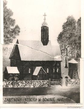 Nieistniejacy już kosciół drewniany w Sowinie (wielkopolskie)