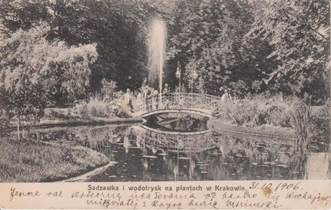 Sadzawka i wodotrysk na plantach w Krakowie - 1906 r.