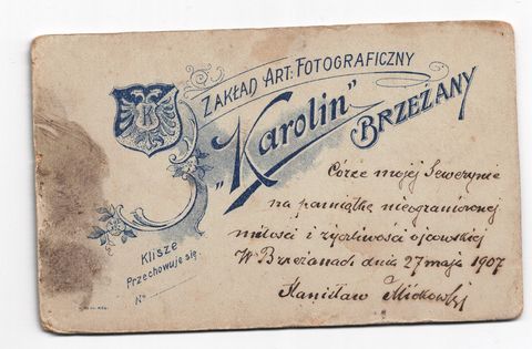 Tu można umieszczać rewersy zdjęć, które same w sobie zawierają istotną informację - np. podpis. Aby zdjęcie zlinkować z rewersem należy w polach opisu umieścić kod [minipic ]xxxxxx[ /minipic ] (bez spacji, a xxxxxx zamienić na numer zdjęcia). Pod zdjęciem powstanie wówczas miniaturka rewersu, i na odwrót. Nie ma potrzeby umieszczania czystych rewersów. Winiety fotografów przedwojennych (zdjęcia oczyszczone) mają osobny album.