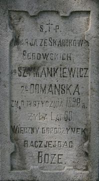 Maria ze Skarbków Borowskich I v. Szymankiewicz II v. Domańska (1838 - 1898) - cmentarz w Zaklikowie