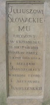 Słowacki Juliusz - tablica pamiątkowa na cmentarzu w Krzemieńcu