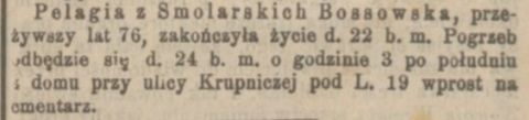 Smolarska Pelagia, zam. Bossowska