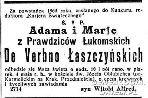 Leduchowski (Ledóchowski) Wincenty - nekrolog