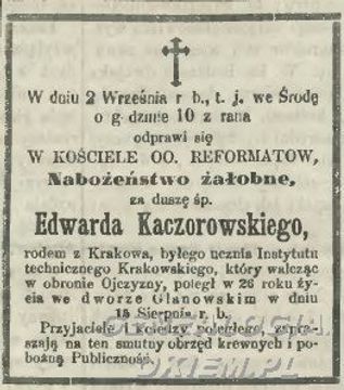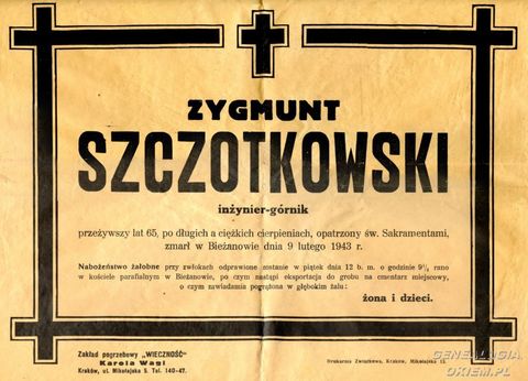 Błociszewski Kazimierz - inormacja o nabożeństwie żałobnym