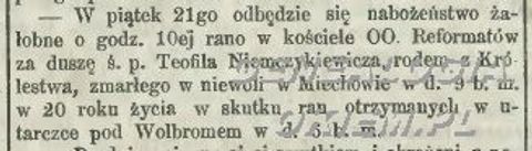 Niemczykiewicz Teofil - nabożeństwo żałobne