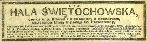Informacja o zmarłych - 1906, SP nr 320