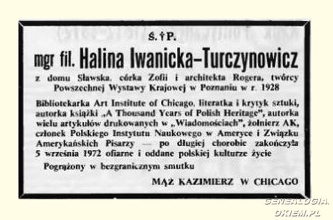 Halina Sławska psd.Iwanicka - Turczynowicz - nekrolog