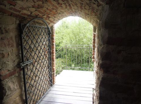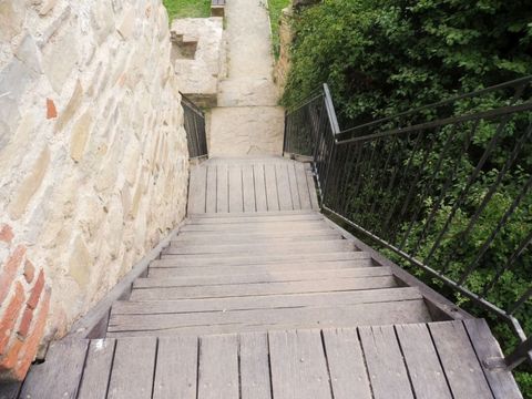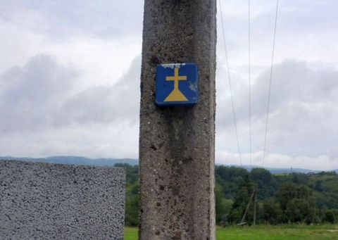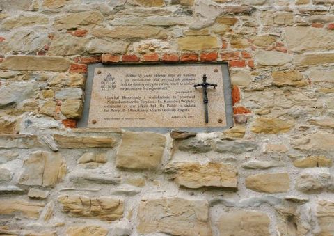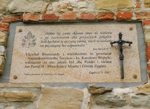 Zagórz . Oznaczenie szlaku papieskiego do ruin .