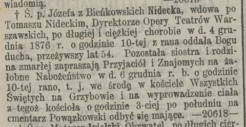 Bieńkowska Józefa, zam. Nidecka