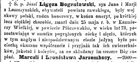Katarzyna Bem nekrolog w Kurierze Warszawskim 10.05.1871