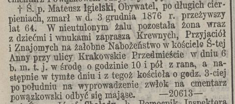 Aleksander Hoszowski zmarl Kraków 1870