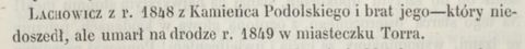 Domicela Fachinetti nekrolog w Kurierze Warszawskim 23.02.1863