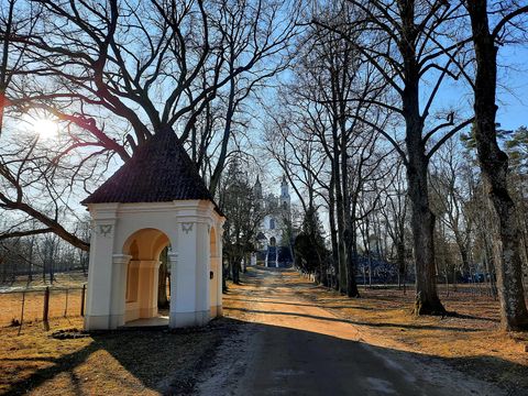 Wilno Werki (lit. Vilnius/Verkiai) - Kalwaria Wileńska - kościół p.w. Odnalezienia Krzyża Świętego oraz kapliczka stacji drogi krzyżowej