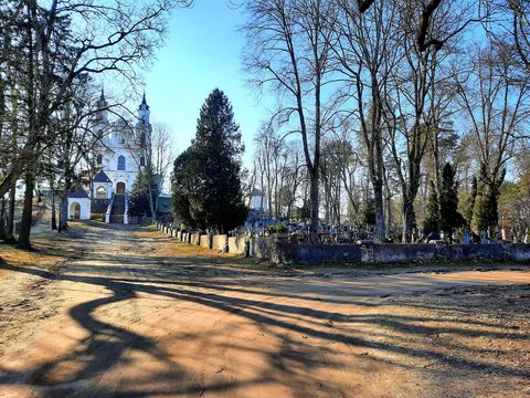 Wilno Werki (lit. Vilnius/Verkiai) - Kalwaria Wileńska - kościół p.w. Odnalezienia Krzyża Świętego oraz pobliski cmentarz