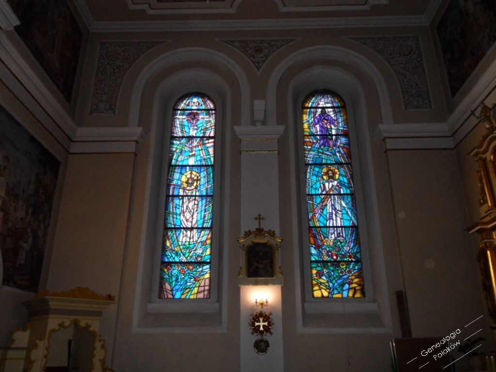 Neobarokowe ołtarze i ambona oraz barokowe elementy przeniesiono ze starego kościoła Krzyża Świętego zniszczonego w 1945 r.