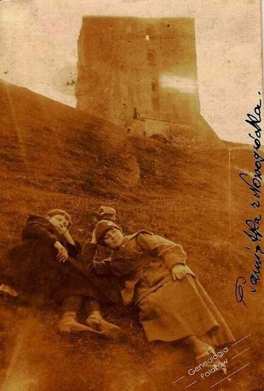 .Zdjęcie zostało zrobione w Nowogródku na górze pod Zamkiem, 25 czerwiec 1919 r. Na zdjęciu babcia P.Haliny-Felicja Rawicz-Olszewska z koleżanką.Pani Felicja Rawicz- Olszewska służyła w siłach pomocniczych Misji Amerykańskiej.