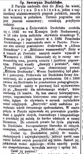 Duchińska zd. Żochowska, Gazeta Narodowa 24 sierpnia 1905