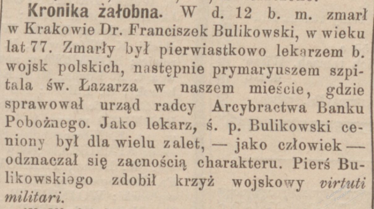 - w czasie Powstania Styczniowego lekarz w szpitalu św. Ducha w Krakowie.