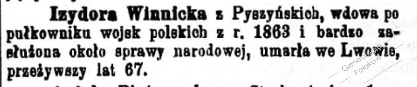 Pyszyńska Izydora, zam. Winnicka