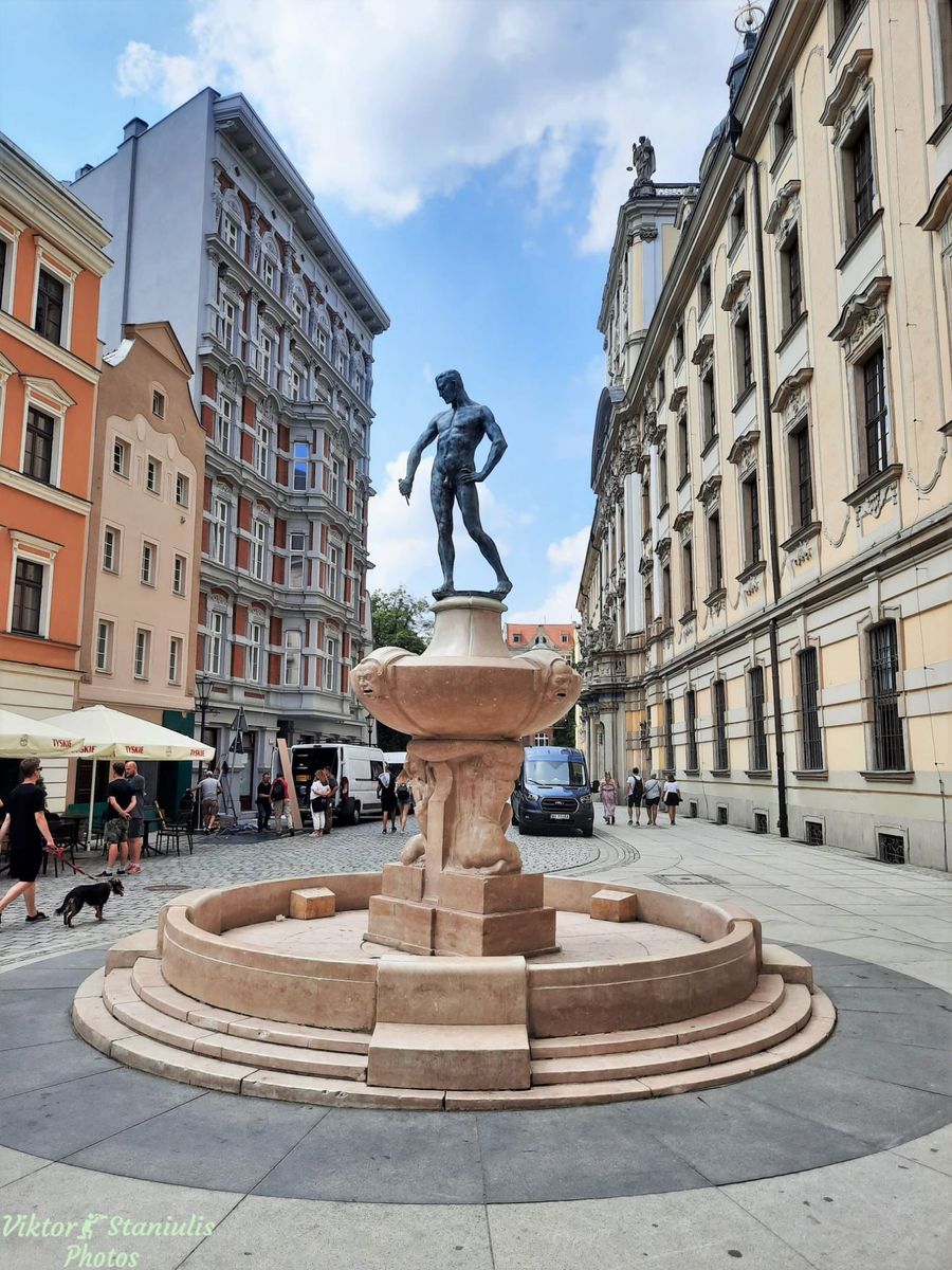 Wrocław (niem. Breslau) - fontanna "Szermierz"
