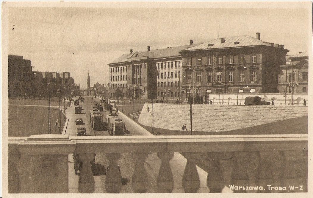 Trasa W-Z w Warszawie na pocztówce.