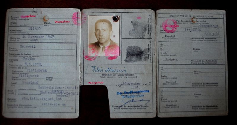 Dane osobowe, zdjęcie, odciski palców - środek Kennkarty Feliksa Majewskiego.