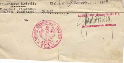 Pieczęć: KOMENDANT WOJEWÓDZKI POLICJI PAŃSTWOWEJ W KIELCACH KOMENDANT WOJEWÓDZKI P.P Br. Ludwikowski, inspektor