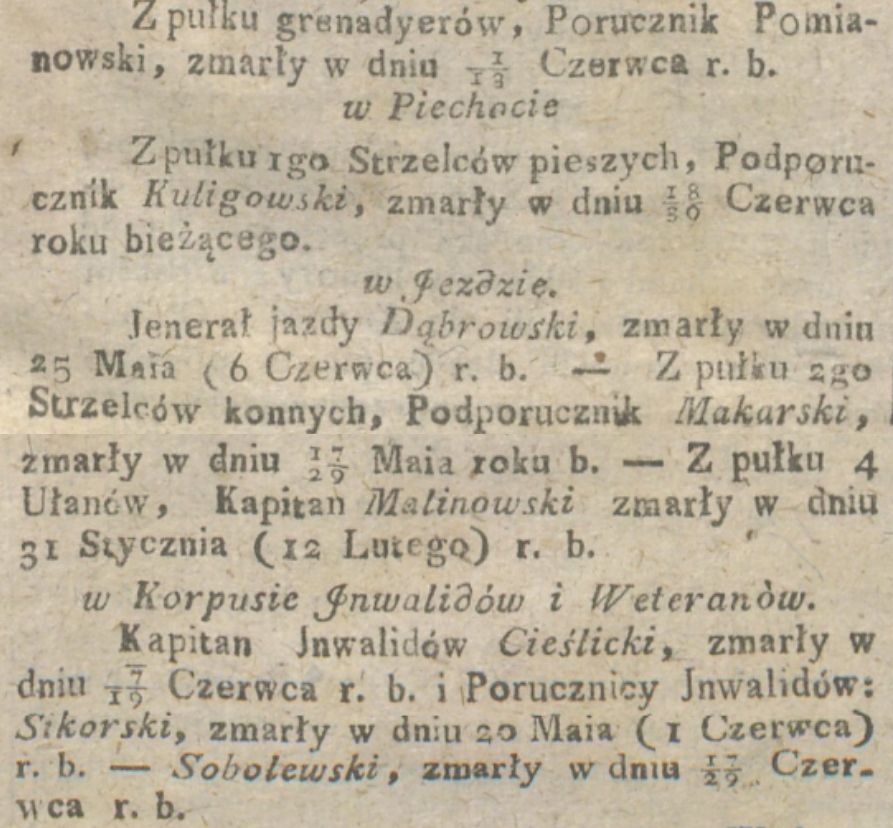 Zmarli w wojsku 1818