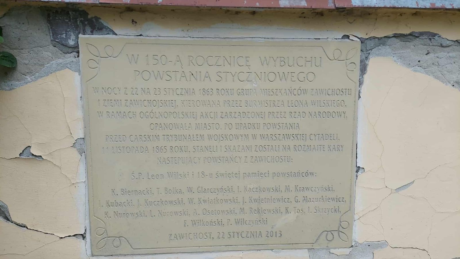 Wymienieni: burmistrz Leo Wilski, K. Biernacki, T. Bolka, W. Glarczyński Kaczkowski, M. Krawczyński, I. Kubacki, J. Kuczkowski, W. Kwiatkowski, J. Kwietniewicz, G. Mazurkiewicz, K. Nurowski, A. Osetowski, M. Reklewski, K. Tos, I. Skrzycki, F. Wilkoński, P. Wilczyński - powstańcy biorący udział w akcji opanowania miasta w pierwszym dniu Powstania, a skazani na różne kary w 1865 roku