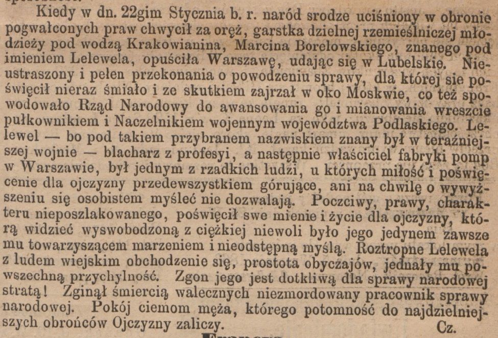 Borelowski Marcin ps. Lelewel ( - 06.09.1863 Batorz)