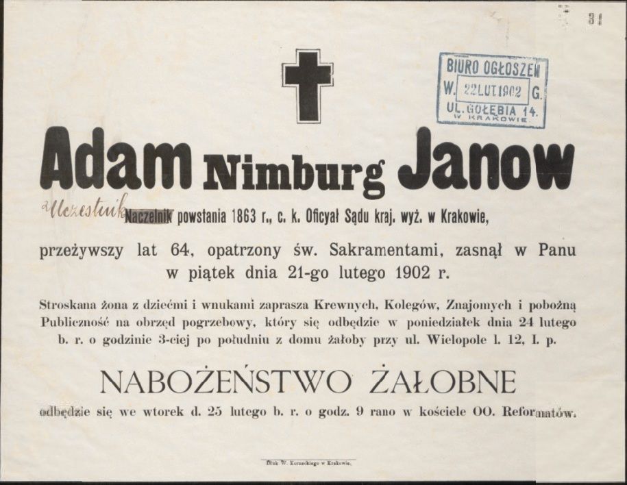 - uczestnik powstania 1863 r, urzędnik C.K. sądu w Krakowie