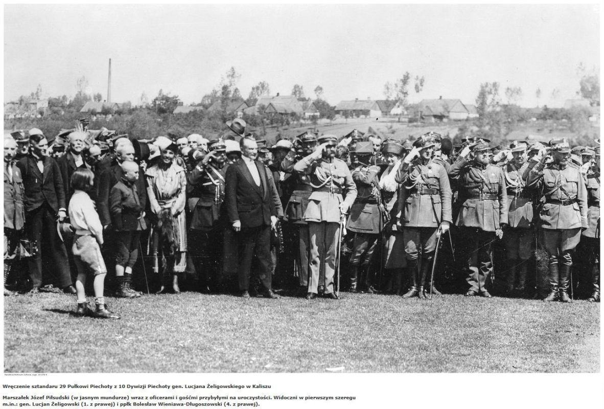 15 maja 1921 odbyło się uroczyste wręczenie chorągwi Pułku Strzelców Kaniowskich z udziałem Józefa Piłsudskiego. Ufundowana została przez warszawskie i kaliskie Koła Opieki nad Żołnierzem. Obelisk upamiętniający to wydarzenie powstał w roku 2018 przy ul. Sportowej w Kaliszu w pobliżu Aquaparku, gdzie kiedyś na tych terenach żołnierze odbywali ćwiczenia. Obelisk powstał z inicjatywy Edwarda Prusa i Związku Piłsudczyków. Sfinansowany przez darczyńców. historia pułku Kalisz. Marszałek Józef Piłsudski trzy razy gościł w mieście.">]