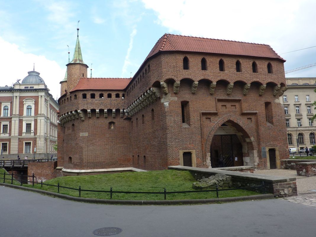 basztą Stolarską , brama Floriańska i Barbakan.