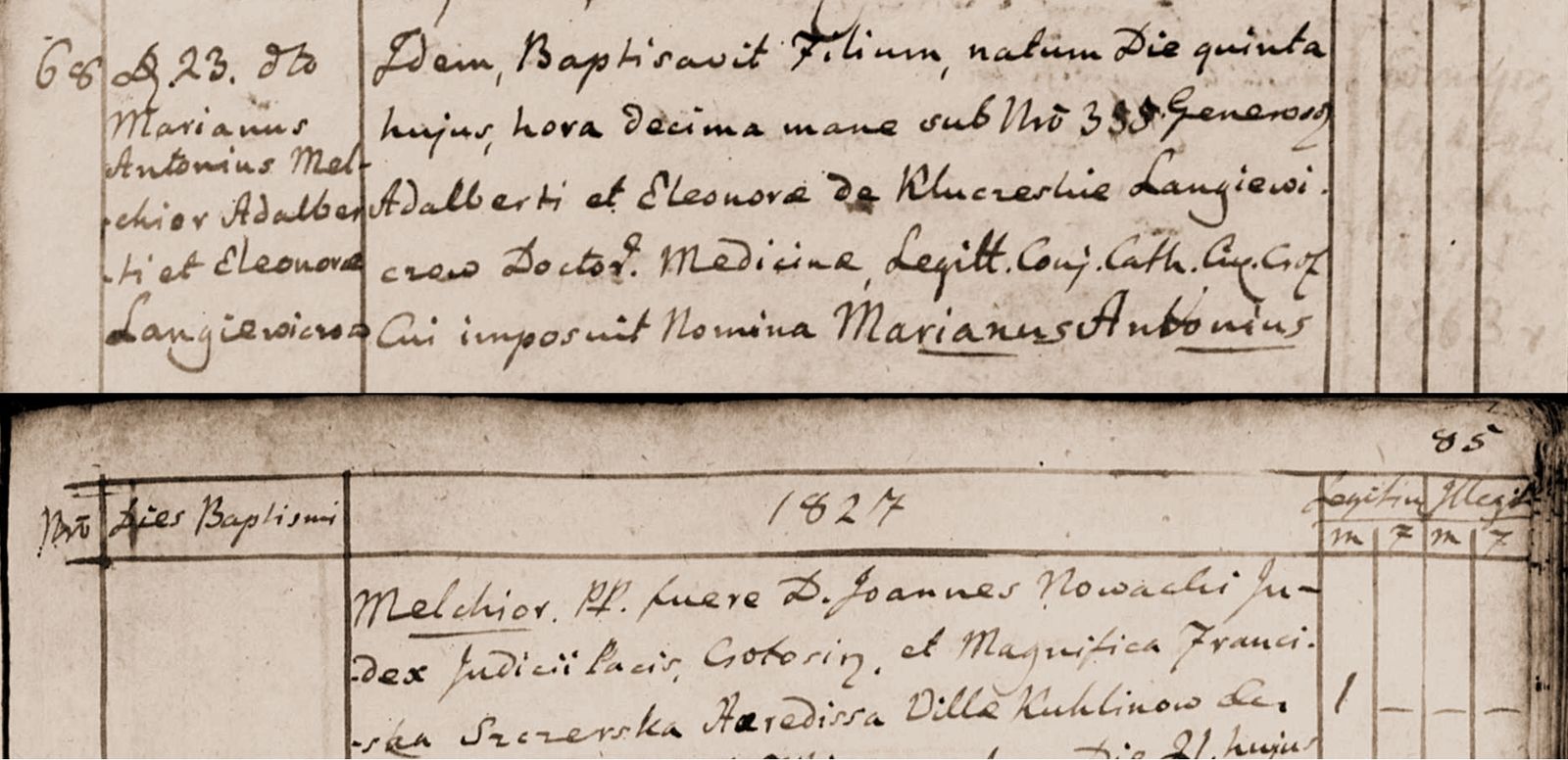 Langiewicz Marian - akt chrztu