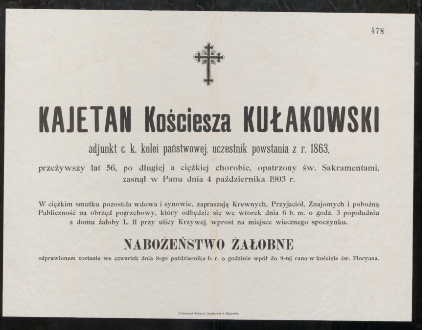 powstaniec styczniowy , adjunkt C.K. kolei państwowej