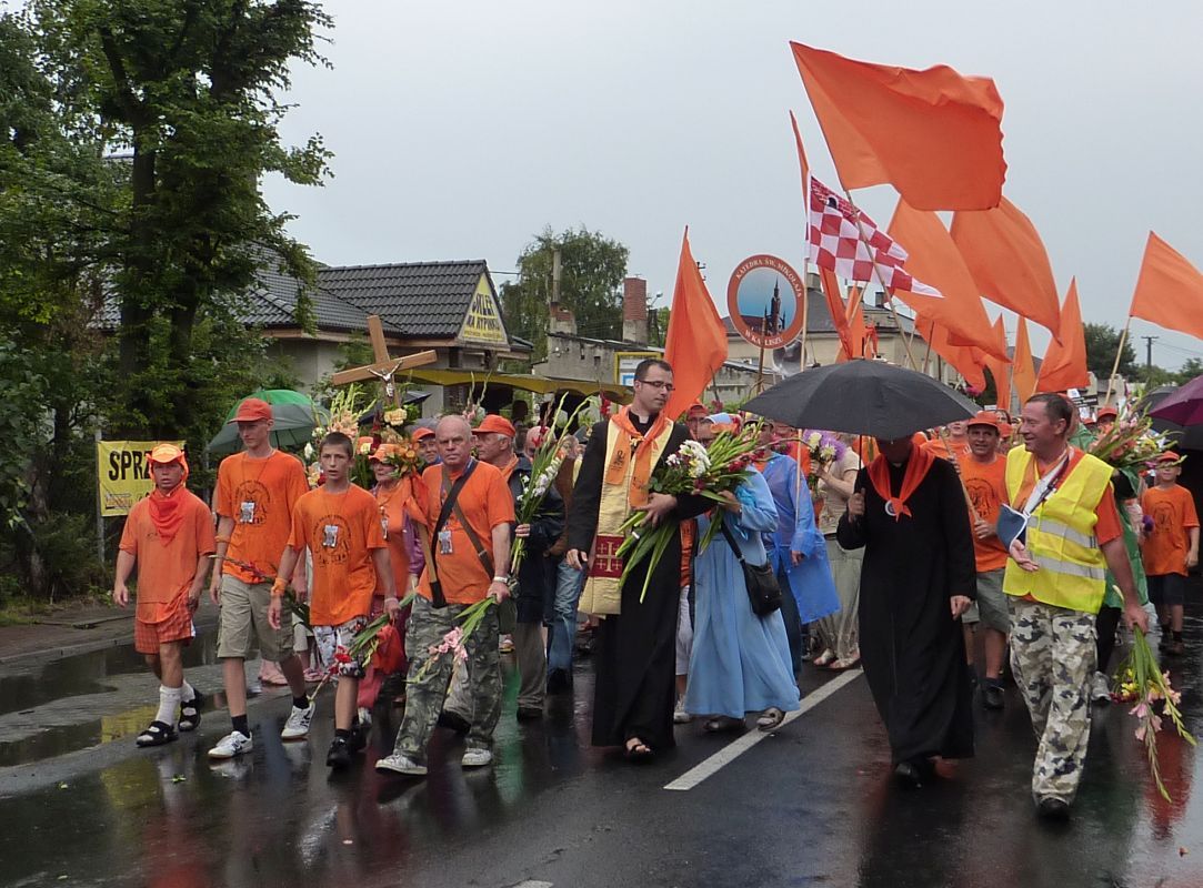 na piechotę idzie . Wraca z Częstochowy