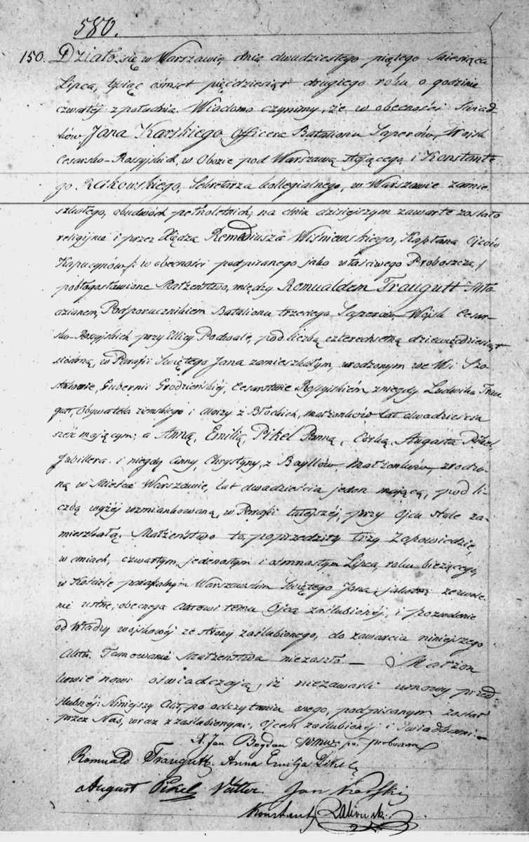 Traugutt Romuald i Anna Pikel - akt ślubu