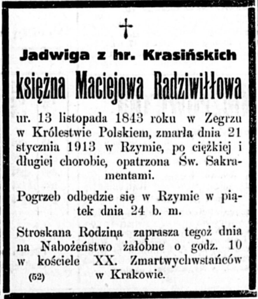 Krasińska Jadwiga, zam. Radziwłł
