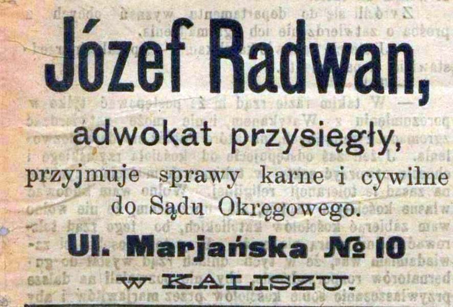 Reklama usług adwokata Józefa Radwana.