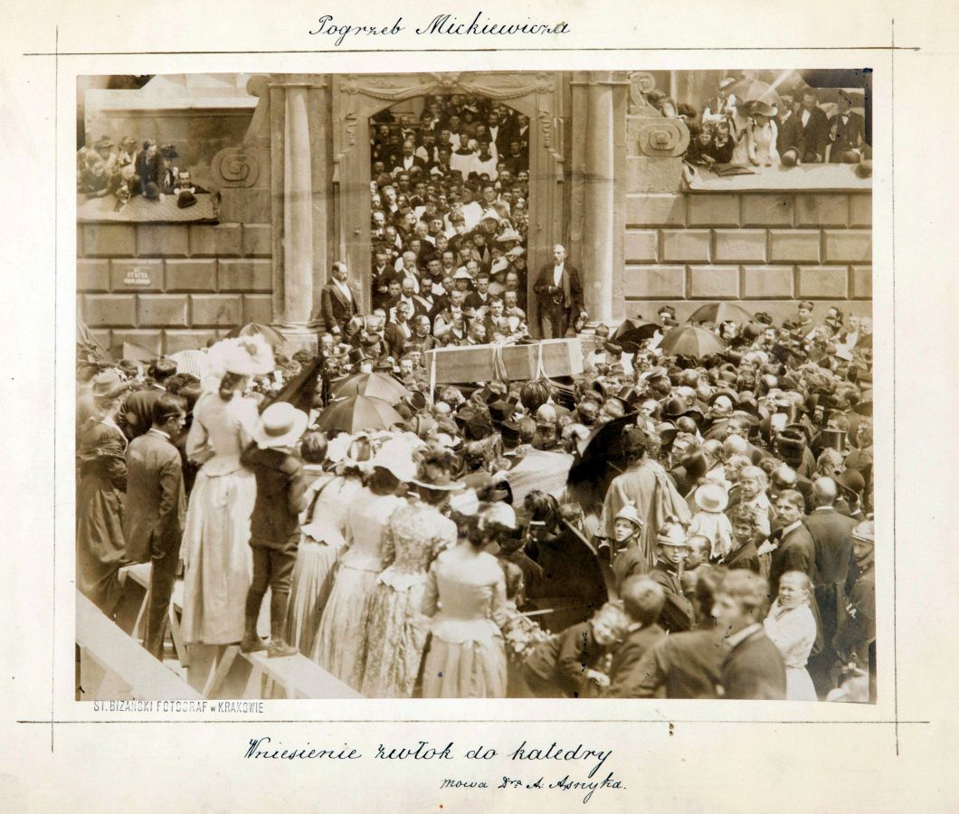Adam Mickiewicz zmarł 26 listopada 1855 r. w Konstantynopolu. Po śmierci w 1855 roku pochowany został tymczasowo w Stambule, a następnie na cmentarzu w Montmorency we Francji. Uroczyste sprowadzenie prochów do Polski i ostateczny pochówek w Krypcie Wieszczów na Wawelu w Krakowie nastąpił 4 lipca 1890 roku. Wniesienie zwłok Adama Mickiewicza do katedry , mowę wygłosił dr. Adam Asnyk.