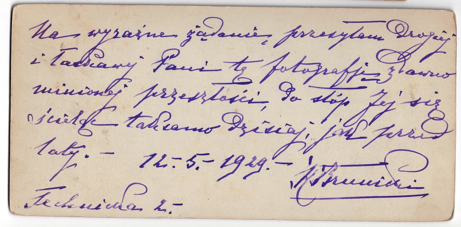 Na wyraźne żądanie przesyłam drogiej i łaskawej Pani tę fotografię z czasów minionej przeszłości, do stóp jej się ścieląc tak samo dzisiaj jak przed laty"