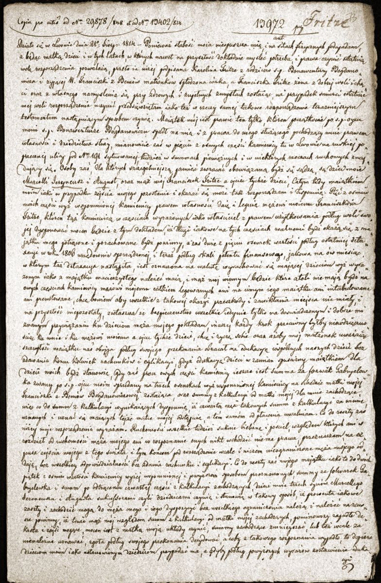 Bogdanowicz Ignacja Elżbieta Karolina Bogdanowicz, zam. Fritze - testament 1/2