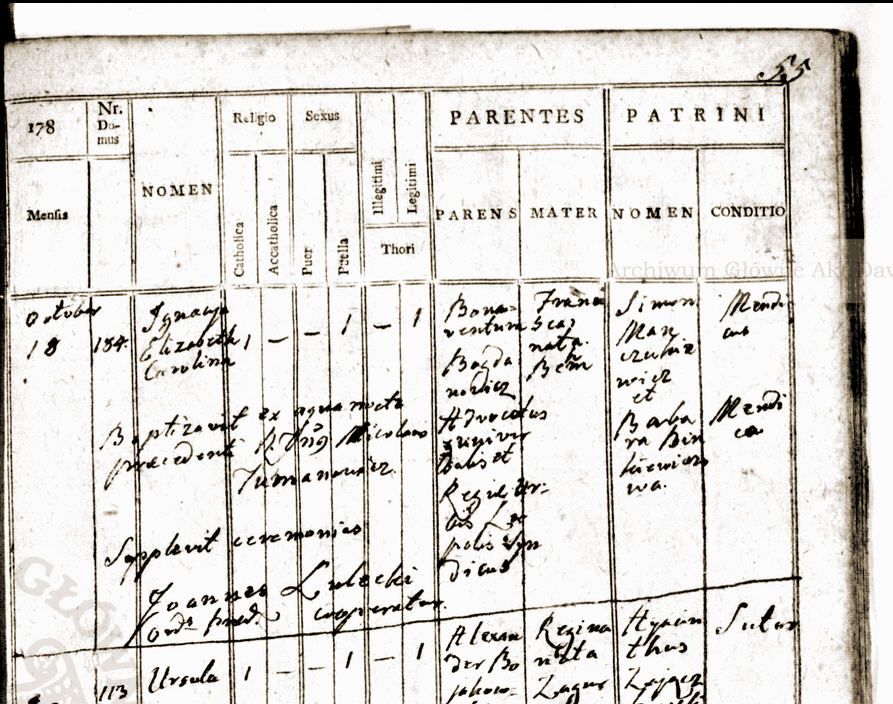 Bogdanowicz Ignacja Elżbieta Karolina Bogdanowicz, zam. Fritze - akt chrztu