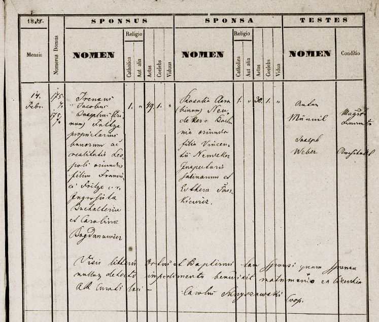 Fritze Ireneusz Jakub Onufry Józef i Rozalia Neudecker - akt ślubu