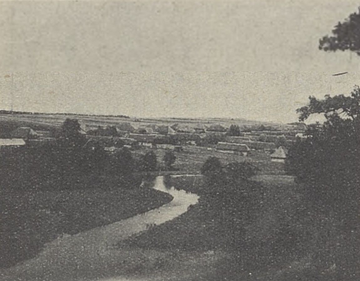 Widok na wieś z ogrodu dworskiego