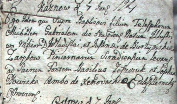 Akt chrztu Telesfora Michała Gabriela Zaręby