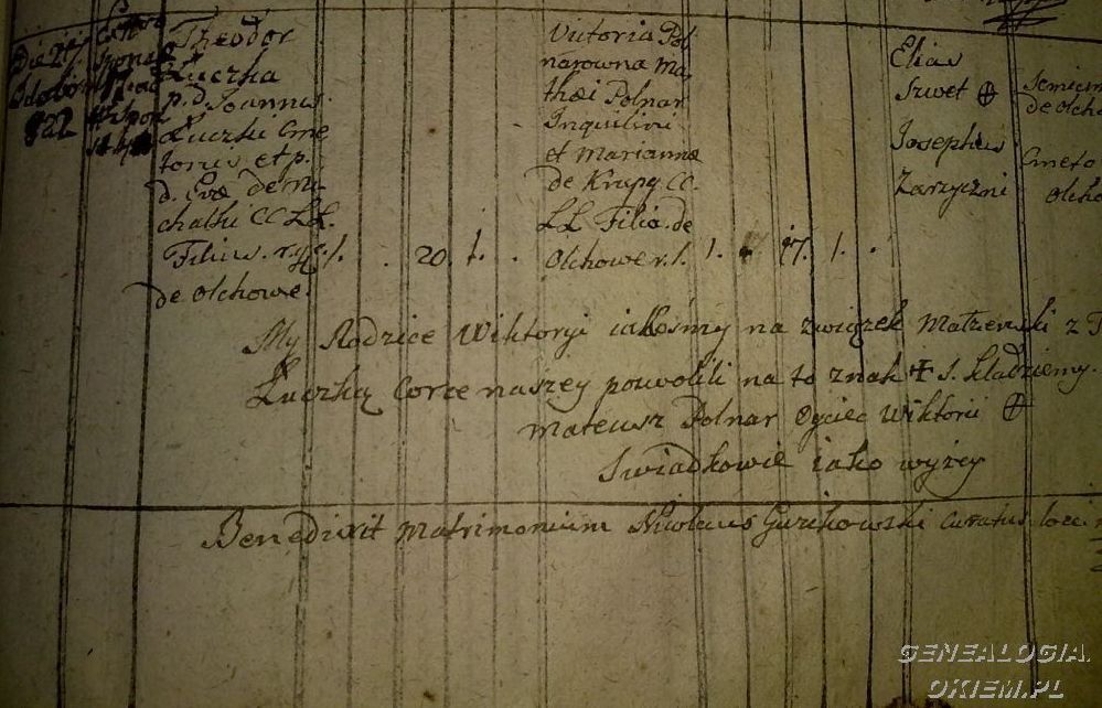 Akt małżeństwa moich prapraprapradziadków po kądzieli, Teodora Łuczki i Wiktorii Połnar z Olchowy