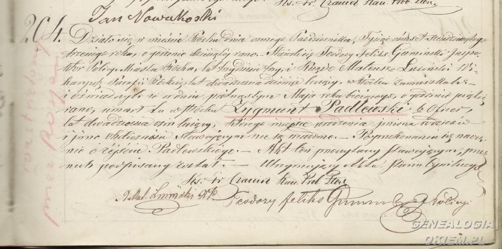 Padlewski Zygmunt - akt zgonu